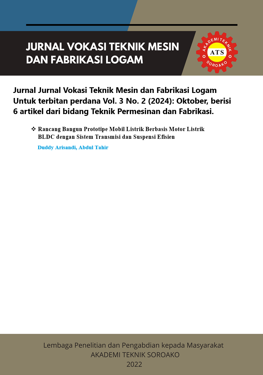 Vol. 3 No. 1 (2024)Jurnal Vokasi Teknik Mesin dan Fabrikasi Logam, Untuk terbitan Vol. 3 No. 1 (2024): April, berisi sejumlah artikel dari dari bidang Teknik Permesinan dan Fabrikasi.